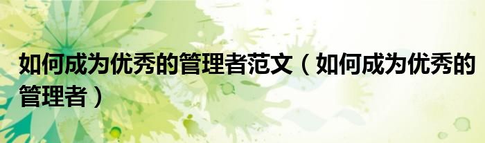 关于如何成为优秀的管理者范文,如何成为优秀的管理者这个很多人还不知道,今天菲菲来为大家解答以上的问题,现在让我们一起来看看吧!