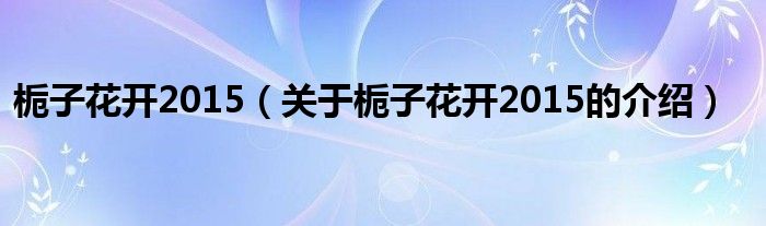 大家好,今天小乐来为大家解答以上的问题。栀子花开2015,关于栀子花开2015的介绍很多人还不知道,现在让我们一起来看看吧!