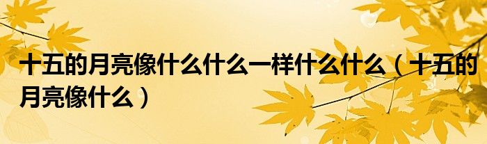 关于十五的月亮像什么什么一样什么什么,十五的月亮像什么这个很多人还不知道,今天菲菲来为大家解答以上的问题,现在让我们一起来看看吧!