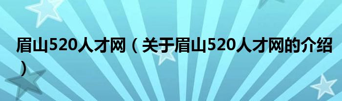 大家好,今天小乐来为大家解答以上的问题。眉山520人才网,关于眉山520人才网的介绍很多人还不知道,现在让我们一起来看看吧!
