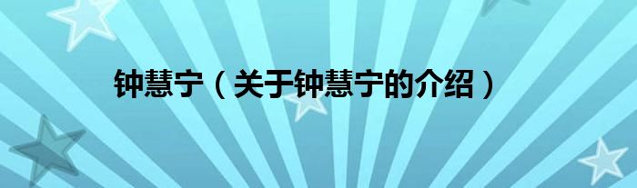 大家好,今天小乐来为大家解答以上的问题。钟慧宁,关于钟慧宁的介绍很多人还不知道,现在让我们一起来看看吧!
