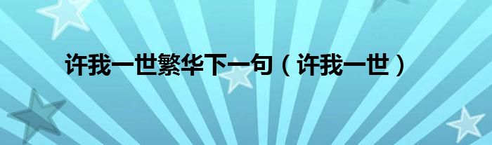 关于许我一世繁华下一句,许我一世这个很多人还不知道,今天菲菲来为大家解答以上的问题,现在让我们一起来看看吧!