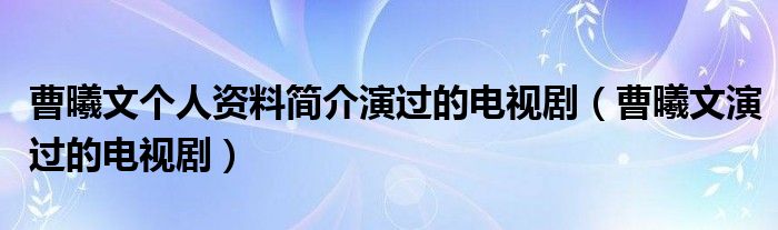 关于曹曦文个人资料简介演过的电视剧,曹曦文演过的电视剧这个很多人还不知道,今天菲菲来为大家解答以上的问题,现在让我们一起来看看吧!