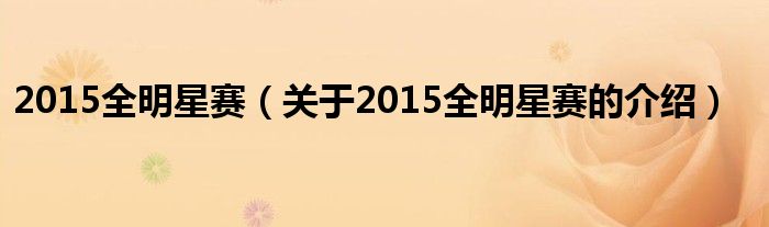 大家好,今天小乐来为大家解答以上的问题。2015全明星赛,关于2015全明星赛的介绍很多人还不知道,现在让我们一起来看看吧!