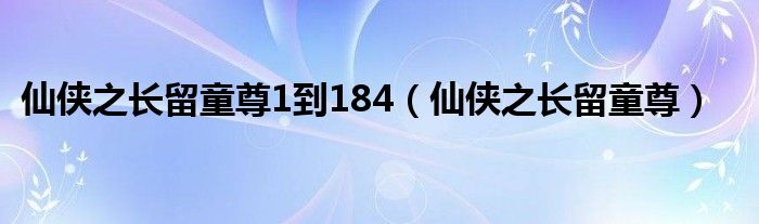 大家好,小晋来为大家解答以下问题,关于仙侠之长留童尊1到184,仙侠之长留童尊很多人还不知道,今天让我们一起来看看吧!