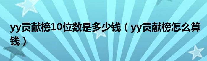 大家好,小晋来为大家解答以下问题,关于yy贡献榜10位数是多少钱,yy贡献榜怎么算钱很多人还不知道,今天让我们一起来看看吧!