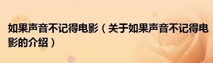 大家好,小都来为大家解答以上的问题。如果声音不记得电影,关于如果声音不记得电影的介绍很多人还不知道,现在让我们一起来看看吧!