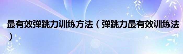 关于最有效弹跳力训练方法,弹跳力最有效训练法这个很多人还不知道,今天菲菲来为大家解答以上的问题,现在让我们一起来看看吧!