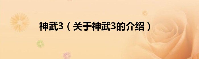 大家好,小都来为大家解答以上的问题。神武3,关于神武3的介绍很多人还不知道,现在让我们一起来看看吧!