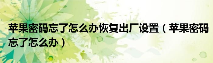 大家好,雨雨来为大家解答以上问题,苹果密码忘了怎么办恢复出厂设置,苹果密码忘了怎么办很多人还不知道,现在让我们一起来看看吧!