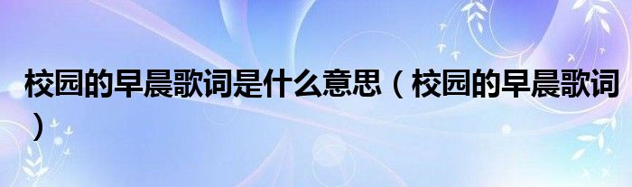 关于校园的早晨歌词是什么意思,校园的早晨歌词这个很多人还不知道,今天菲菲来为大家解答以上的问题,现在让我们一起来看看吧!