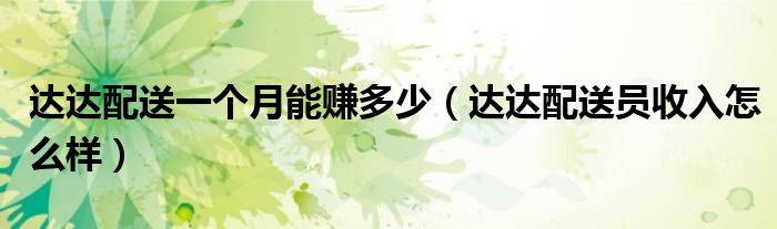大家好,小晋来为大家解答以下问题,关于达达配送一个月能赚多少,达达配送员收入怎么样很多人还不知道,今天让我们一起来看看吧!
