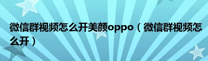 大家好,小晋来为大家解答以下问题,关于微信群视频怎么开美颜oppo,微信群视频怎么开很多人还不知道,今天让我们一起来看看吧!