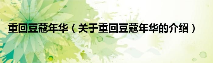 大家好,小都来为大家解答以上的问题。重回豆蔻年华,关于重回豆蔻年华的介绍很多人还不知道,现在让我们一起来看看吧!