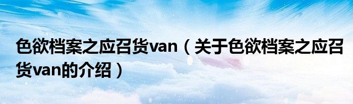 色欲档案之应召货van(关于色欲档案之应召货van的介绍)