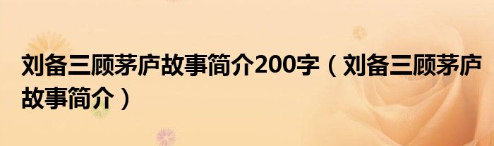 刘备三顾茅庐故事简介200字(刘备三顾茅庐故事简介)