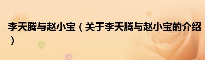 李天腾与赵小宝(关于李天腾与赵小宝的介绍)