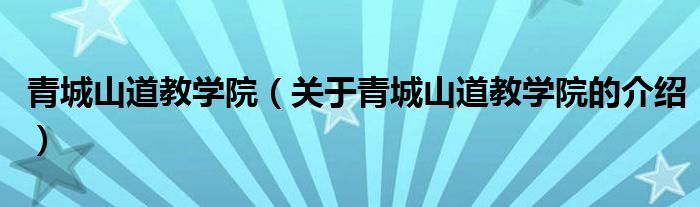 大家好,小都来为大家解答以上的问题。青城山道教学院,关于青城山道教学院的介绍很多人还不知道,现在让我们一起来看看吧!