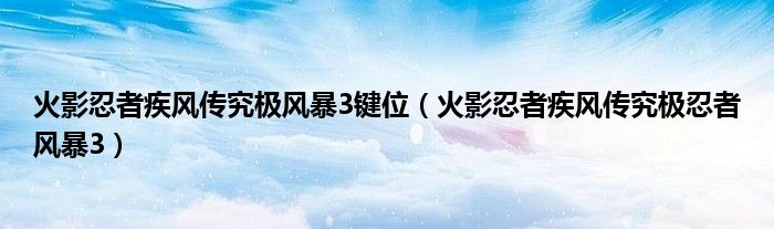 火影忍者疾风传究极风暴3键位(火影忍者疾风传究极忍者风暴3)
