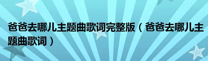 爸爸去哪儿主题曲歌词完整版,爸爸去哪儿主题曲歌词这个很多人还不知道,小飞来为大家解答以上的问题。现在让我们一起来看看吧!