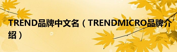 大家好,小源来为大家解答以上问题。TREND品牌中文名,TRENDMICRO品牌介绍很多人还不知道,现在让我们一起来看看吧!
