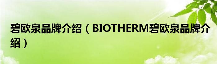碧欧泉品牌介绍(BIOTHERM碧欧泉品牌介绍)