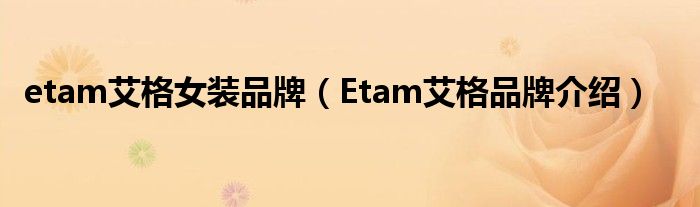 大家好,小源来为大家解答以上问题。etam艾格女装品牌,Etam艾格品牌介绍很多人还不知道,现在让我们一起来看看吧!