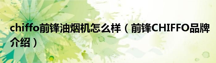 chiffo前锋油烟机怎么样(前锋CHIFFO品牌介绍)