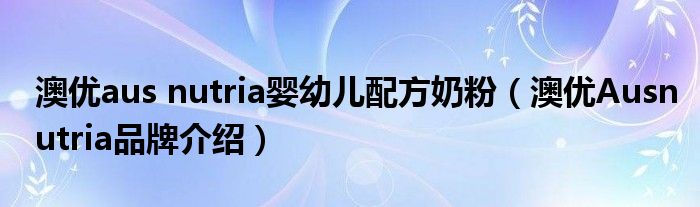 大家好,小源来为大家解答以上问题。澳优aus nutria婴幼儿配方奶粉,澳优Ausnutria品牌介绍很多人还不知道,现在让我们一起来看看吧!