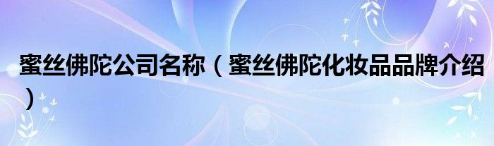 大家好,小源来为大家解答以上问题。蜜丝佛陀公司名称,蜜丝佛陀化妆品品牌介绍很多人还不知道,现在让我们一起来看看吧!
