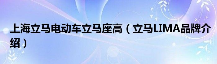 大家好,小源来为大家解答以上问题。上海立马电动车立马座高,立马LIMA品牌介绍很多人还不知道,现在让我们一起来看看吧!