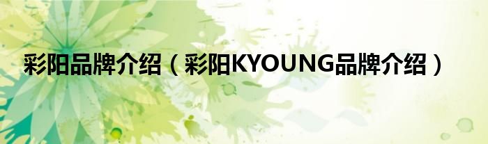 大家好,小源来为大家解答以上问题。彩阳品牌介绍,彩阳KYOUNG品牌介绍很多人还不知道,现在让我们一起来看看吧!