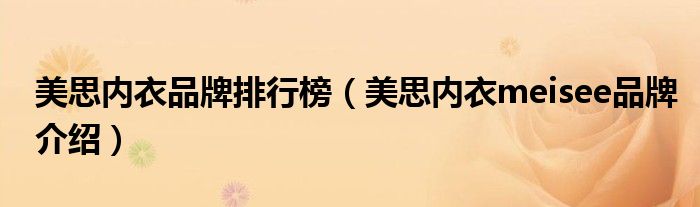 大家好,小源来为大家解答以上问题。美思内衣品牌排行榜,美思内衣meisee品牌介绍很多人还不知道,现在让我们一起来看看吧!
