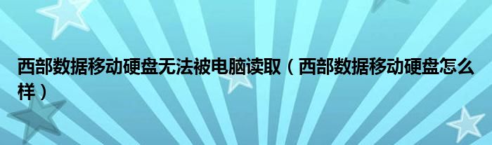 大家好,小飞来为大家解答以上问题,西部数据移动硬盘无法被电脑读取,西部数据移动硬盘怎么样很多人还不知道,现在让我们一起来看看吧!