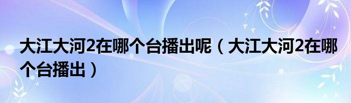 大家好,小飞来为大家解答以上的问题。大江大河2在哪个台播出呢,大江大河2在哪个台播出这个很多人还不知道,现在让我们一起来看看吧!