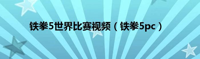 铁拳5世界比赛视频,铁拳5pc这个很多人还不知道,小飞来为大家解答以上的问题。现在让我们一起来看看吧!
