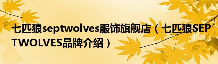大家好,小源来为大家解答以上问题。七匹狼septwolves服饰旗舰店,七匹狼SEPTWOLVES品牌介绍很多人还不知道,现在让我们一起来看看吧!