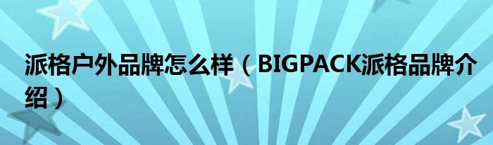 大家好,小源来为大家解答以上问题。派格户外品牌怎么样,BIGPACK派格品牌介绍很多人还不知道,现在让我们一起来看看吧!
