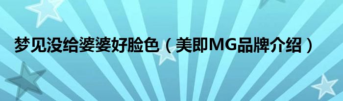 大家好,小源来为大家解答以上问题。梦见没给婆婆好脸色,美即MG品牌介绍很多人还不知道,现在让我们一起来看看吧!