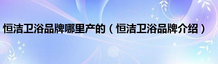 大家好,小源来为大家解答以上问题。恒洁卫浴品牌哪里产的,恒洁卫浴品牌介绍很多人还不知道,现在让我们一起来看看吧!