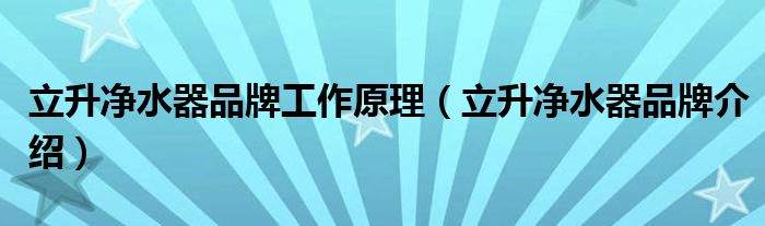 大家好,小源来为大家解答以上问题。立升净水器品牌工作原理,立升净水器品牌介绍很多人还不知道,现在让我们一起来看看吧!