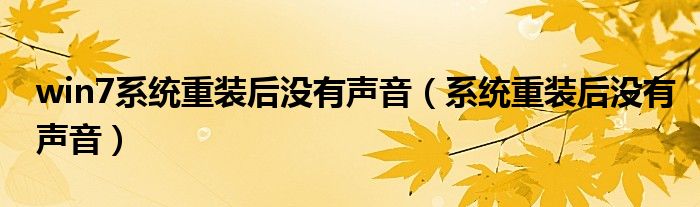 关于win7系统重装后没有声音,系统重装后没有声音这个很多人还不知道,今天菲菲来为大家解答以上的问题,现在让我们一起来看看吧!
