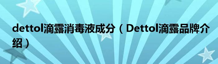 大家好,小源来为大家解答以上问题。dettol滴露消毒液成分,Dettol滴露品牌介绍很多人还不知道,现在让我们一起来看看吧!