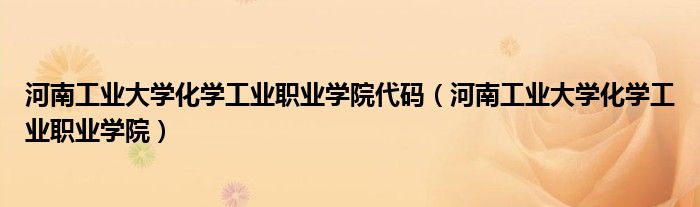 河南工业大学化学工业职业学院代码(河南工业大学化学工业职业学院)