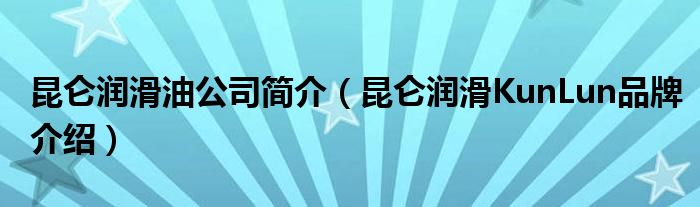 大家好,小源来为大家解答以上问题。昆仑润滑油公司简介,昆仑润滑KunLun品牌介绍很多人还不知道,现在让我们一起来看看吧!
