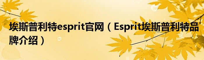 大家好,小源来为大家解答以上问题。埃斯普利特esprit官网,Esprit埃斯普利特品牌介绍很多人还不知道,现在让我们一起来看看吧!