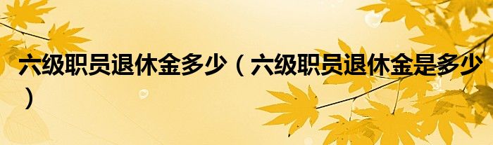六级职员退休金多少,六级职员退休金是多少这个很多人还不知道,小飞来为大家解答以上的问题。现在让我们一起来看看吧!