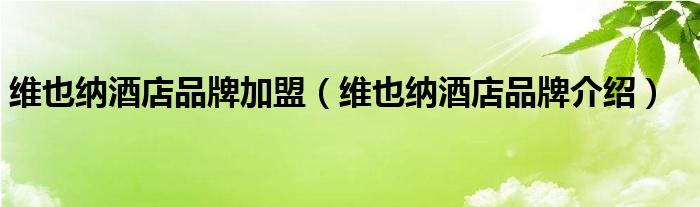大家好,小源来为大家解答以上问题。维也纳酒店品牌加盟,维也纳酒店品牌介绍很多人还不知道,现在让我们一起来看看吧!