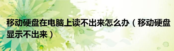 【移动硬盘无法识别】移动硬盘无法读取怎么办?如何避免移动硬盘无法识别?