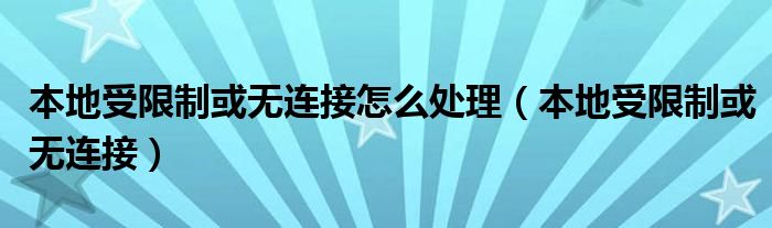 大家好,雨雨来为大家解答以上问题,本地受限制或无连接怎么处理,本地受限制或无连接很多人还不知道,现在让我们一起来看看吧!